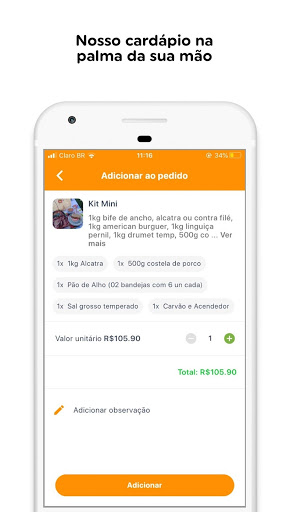 Depois de escolher o seu prato preferido, utilize o campo de observação para que tudo chegue do jeitinho que você gosta, podendo customizar os ingredientes do seu pedido.