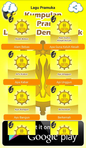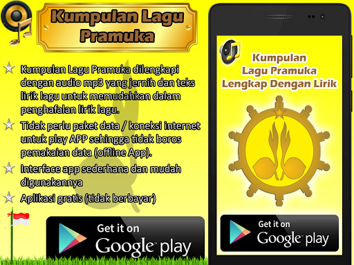 Questa applicazione contiene una raccolta di canzoni Scout indonesiano. Le canzoni di Scout in questa applicazione sono canzoni popolari nel mondo degli scout, adatto per il canto durante l'allenamento scout, quando campeggi, persami, jamboard, jamboese nazionale, ecc. Durante la partecipazione a Scouts, ovviamente sarete promossa da Scout Coachs, Raisers, Seadman di squadra e così via per dividere le canzoni di Scout popolari insieme e, naturalmente, hanno anche urlo e gioia esplorate. Per accogliere i nuovi bambini scout che entrano presto nella Junior High and High School, e anche per accogliere il giorno di scout che cadrà il 14 agosto e accolgo il benvenuto l'anniversario dell'indipendenza indonesiana il 17 agosto o si chiama Agustusan e date molto gli Scouts Molto, a partire dalla scuola elementare fino alla scuola superiore e ai bambini universitari, anche Scout UKMS, quindi condividiamo gli esploratori più completi di 36 canzoni, tra gli altri: