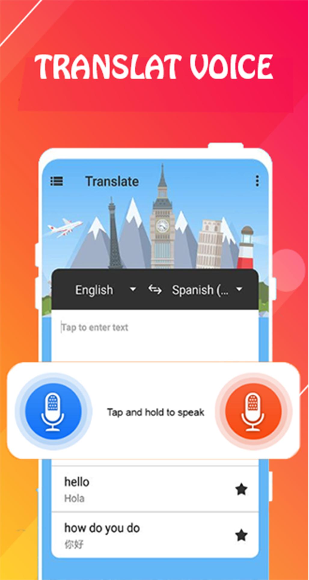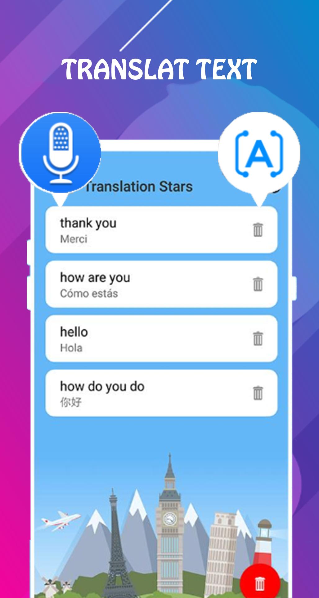 Le traducteur de langue et les applications gratuites de synthèse vocale incluent les options de conversation et de traduction, ce qui le rend très facile, rapide et précis pour votre traduction. Si vous éprouvez des difficultés à rédiger le texte, alors tous les traducteurs vocaux et toutes les traducteurs de langue gratuits ont l'option de parler en cliquant sur l'icône du microphone afin que les mots parlés soient automatiquement traduits.Free all Language Translator est une application à téléchargement gratuit pour traduire Language. Traducteur vocal gratuit, vous pouvez également l'utiliser comme langue d'apprentissage et comprendre un outil linguistique personnalisé avec votre propre dictionnaire. Sentez-vous heureux si vous êtes un étudiant, un touriste ou un voyageur Traducteur de langue et tout traducteur de voix vous aidera à apprendre la langue de votre pays.Cette application est conçue pour vous aider à parler facilement à des étrangers dans leur traducteur de langue maternelle gratuit 2019.