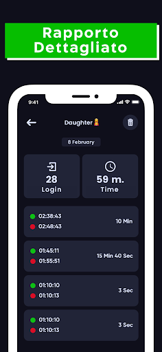 • È possibile visualizzare quante volte accede durante il giorno e per quanto tempo rimane online.
