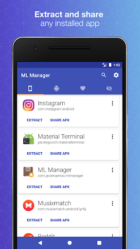 ML Manager è un gestore APK personalizzabile per Android: estrae qualsiasi app installata, contrassegnandoli come preferiti, condividi file .apk facilmente e molto altro.