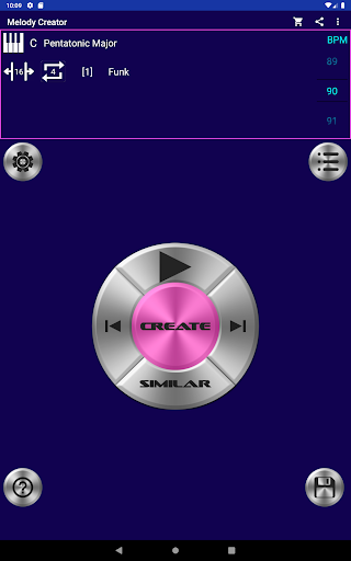 6. Seleziona in ritmo, metronomo o più di 20 ritmi diversi che sono costantemente aggiornati, per andare con la tua melodia 7. Genera una melodia simile basata su quella creata prima degli 8. Selezionare da 3 diversi intervalli di casualità per generare le melodie (l'alta casualità può coinvolgere bruschi cambiamenti nelle note di melodia)