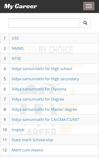 # My Career app contains information on all courses available in Kerala, course details include duration, description about the course, Higher study, scholarship and institute.