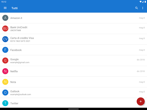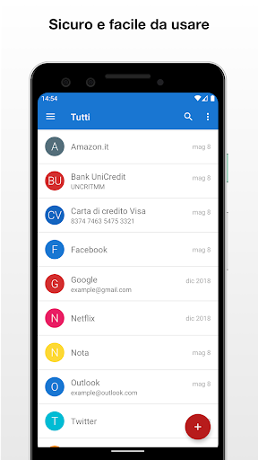 • Questa è un'applicazione di gestione password offline e non esiste sincronizzazione automatica tra i dispositivi