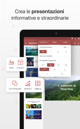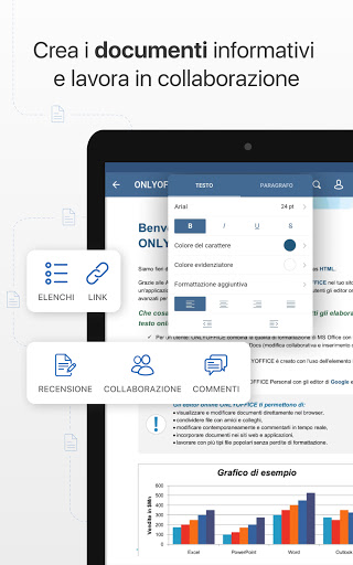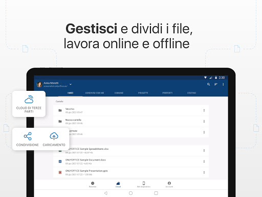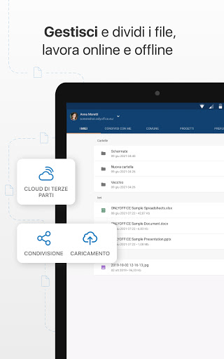 ONLYOFFICE Documents è un'app gratuita per lavorare con i documenti. Accedi e gestisci facilmente i file salvati nel cloud ONLYOFFICE. Collabora ai documenti insieme ai tuoi compagni di squadra. Visualizza, gestisci e modifica file locali.