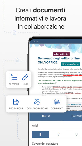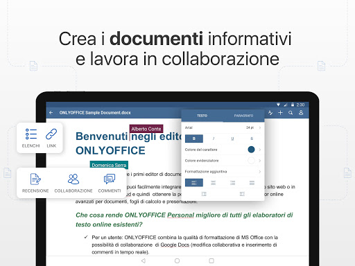 Con ONLYOFFICE Documents è possibile modificare i documenti da parte di più utenti simultaneamente. Vedrai le modifiche in tempo reale mentre i co-Autori stanno scrivendo.