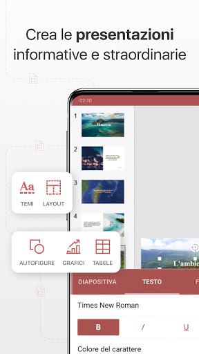 Modifica documenti di testo, fogli di calcolo e presentazioni, visualizza PDF, foto e video. Ordina, rinomina, sposta e copia file, crea cartelle. Converti file per l'esportazione.