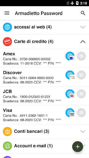 ✓ passaporto e data di scadenza della carta di credito servizio di promemoria