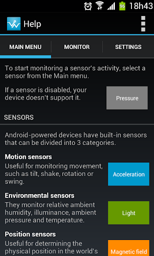 Con l'aiuto incorporato Puoi scoprire di più sulle funzionalità del sensore e scopri come funzionano.