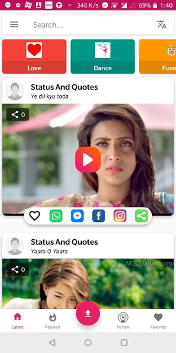 Get videos in Various categories like Love, Sad, Funny, Devotional, Greetings etc.
