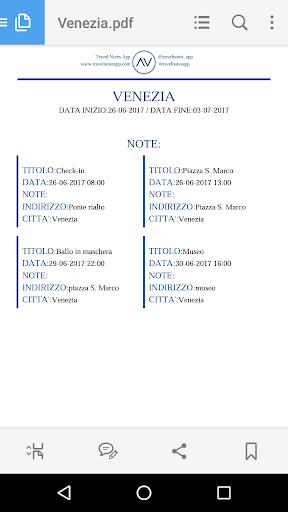 - Salvare e stampare pdf dell'intero viaggio o della singola nota