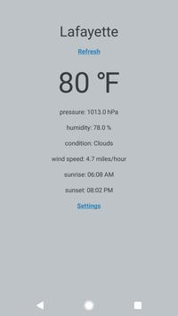 2. Provides details such as pressure, humidity level, cloud conditions, wind speed, sunrise and sunset time