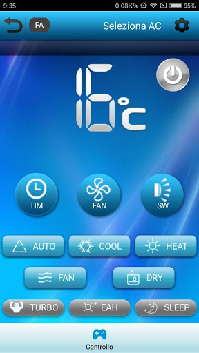 1. Controllo: Permette di controllare il climatizzatore a distanza, cambiare la temperatura, la velocità della ventola, la rotazione delle alette e così via.