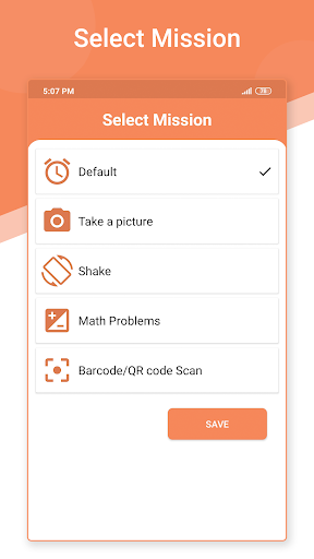 ➼ Come suggerisce il nome, viene fornito con missioni, come la missione di foto, la missione di matematica, la missione del codice a barre e la missione di scuotimento.