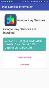 Check Google Play Services update simply, just open the application and check it. It shows installed play services version, installed date and updated date.