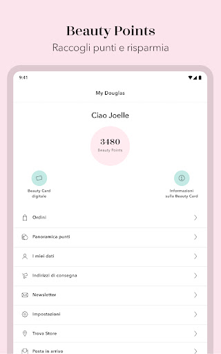 • FUNZIONE RIACQUISTA: Riordina i tuoi cosmetici e profumi preferiti con pochi clic. Hai già fatto il pieno dei tuoi prodotti preferiti? Allora metti in pausa i prodotti desiderati nella funzione riacquista. Crea la tua lista della spesa personale con l'app Douglas!