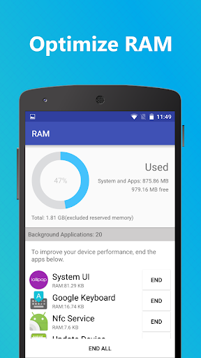 Smart Manager 2020 è un'app gratuita per visualizzare le statistiche della batteria, lo stoccaggio sul telefono e cancella la RAM & Caches per aumentare le prestazioni del tuo telefono. Smart Manager prende meno spazio sulla memoria del telefono e consente di ottimizzare il tuo telefono. Chiuderà tutte le app di sfondo in esecuzione sullo sfondo che stanno drenando in modo significativo la batteria.