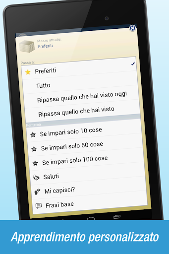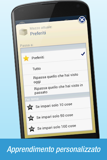 Qualsiasi carta può essere salvata tra le preferite, permettendoti di creare mazzi personalizzati e concentrarti sulle parole del giorno. Attiva la modalità ripasso per ricapitolare quello che hai studiato e imprimere le parole nella tua memoria.