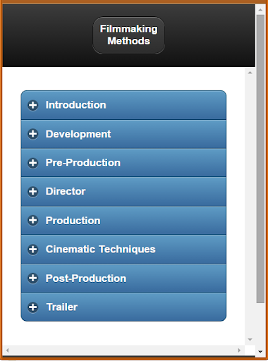 # Film Making è una professione intelligente e popolare. Un film può far pensare alle persone come la sua strada. L'industria cinematografica è un settore forte tra tutte le altre industria. Molte persone vogliono essere un film maker. Questa app è sviluppata per chi ha interessato le persone che vogliono essere dei produttori cinematografici.