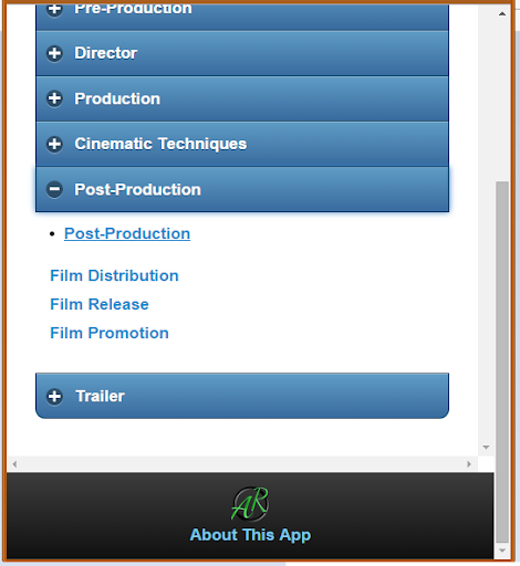 # In questa app l'intero processo di produzione cinematografica è descritto brevemente. Il processo di cinema è diviso in tre parti principali. Questi sono: