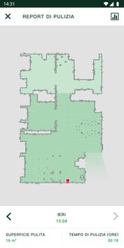 • Report di Pulizia: dopo ogni ciclo di lavoro, l’App visualizza un riepilogo con le informazioni sulla superficie pulita e la durata totale della pulizia. Il Report di Pulizia può essere condiviso sui social media.