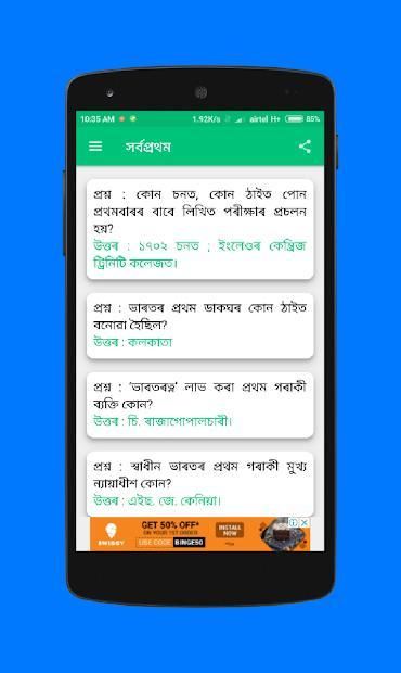 এই app টোত প্ৰতিদিনে নতুন নতুন কুইজ add কৰা হয়। গতিকে app টো সদায় আপোনাৰ মোবাইলত install ৰাখিব নতুন নতুন কুইজ পঢ়িবলৈ।