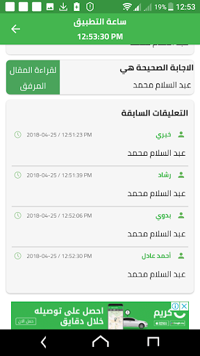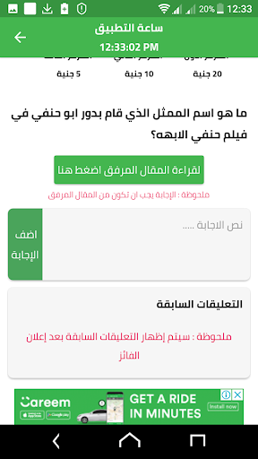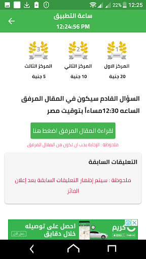 ب - افتح فالحال التنبيه او صفحة الاسئله بالتطبيق ستجد اعلان السؤال القادم وستجد مشار فيه الى الساعة التي سينشر فيها السؤال