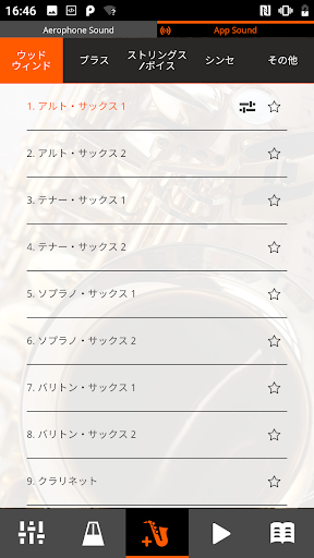 また、スマートフォンやタブレットに保存されたお気に入りの曲をバックにAerophone miniを演奏することも可能。単調になりがちな練習も、楽しく続けられます。アプリには50音色が内蔵され、さまざまなジャンルの曲が一台で演奏可能。サックスをはじめとする管楽器はもちろん、尺八やバグパイプなどの民族楽器、ローランドならではのシンセ音色も搭載しているので、曲の雰囲気に合わせた音色が選べます。