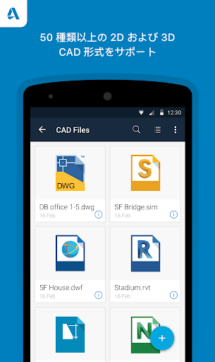 AutoCAD(DWG)、DWF、Revit(RVT)、NavisWorks(NWD、NWC)などを含む65の異なるCADファイル形式。デバイスからモデルを表示しますモデル: