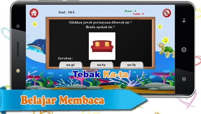 Untuk mengetahui tingkat pemahaman putra-putri kita, aplikasi ini menyediakan menu latihan membaca dengan memilih kata yang benar yang disesuaikan dengan gambar yang ditampilkan. Untuk level dasar, kata -kata yang disajikan terdiri dari dua suku kata.