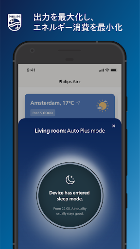 Air アプリで Auto Plus モードを有効にすると、室内の空気は自動的にクリーニングされ、汚染物質を寄せ付けません。人工知能を搭載したこの自己適応技術では、スマートセンサー、部屋のサイズ、屋外データ、行動パターンの測定値をもとにデバイスのパフォーマンスを最大化します。