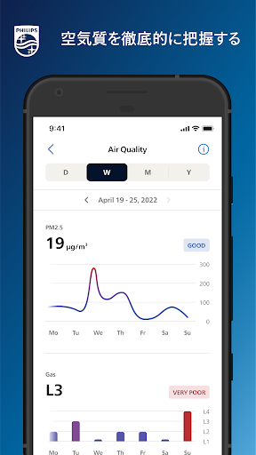 アプリが室内および屋外の汚染物質をすべて記録しデバイスの運転を自動調整してくれるので、自分で調整する必要はありません。Air があれば、デバイスのリモコンと通知機能を利用し、自宅でも外出先でも、汚染物質やアレルギー、ガスといった空気に関するすべての心配事を管理できます。また、過去から現在までの空気質データの情報を常に把握できるので、クリーンで健康的な空気の確保を完全にコントロールすることが可能になります。