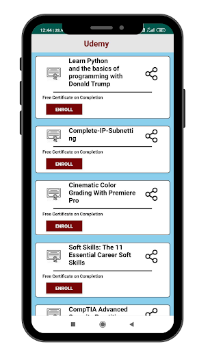 コースジョイヤーは教育アプリで、Udemy、Coursera、およびGoogleを含む無料の証明書と多くの有料コースを入手しています。フリーコースを通じてあなたのスキルを強化した後、あなたはまた有料のインターンシップと無料のオンラインワークショップに登録することができます。コースへの登録後、あなたはビデオの生涯にアクセスすることができます。それはすべての人のために無料であり、誰も彼らの特定の分野で彼らのスキルを増やすことができます。