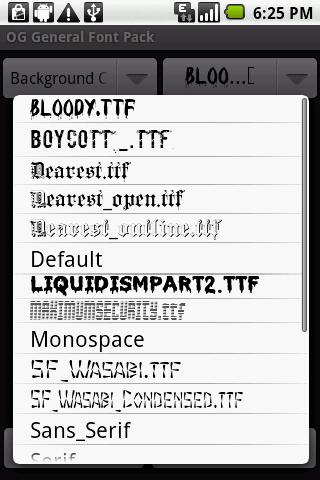 An eclectic selection of fonts to customize the home screen of Open Gesture Pro. Instructions: download and install it. To access it. From the home screen click on the Menu button gt; More gt; Fontsnote You must have Open Gesture Pro to use this font pack. It is not compatible with any other app.
