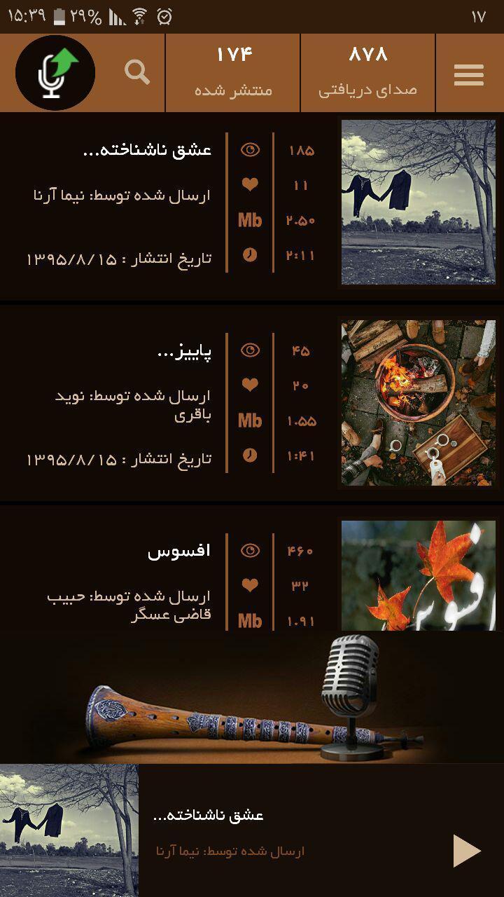 ۱- صداهای خود را از قسمت 'صدای شما' در داخل اپلیکیشن برای ما ارسال نمایید تا با نام خودتان در برنامه منتشر گردد.