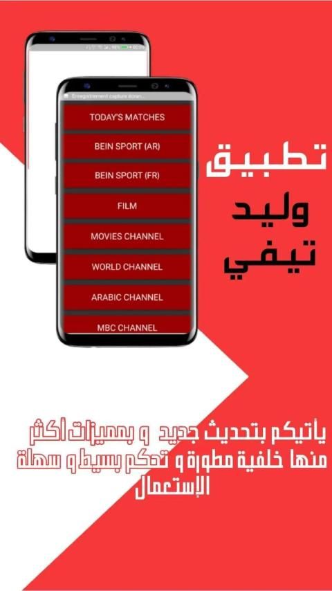 هَلْ تَبْحَثُ عَنْ تَطْبِيقٍ لِلْمَشَاهِدَةِالْقِنْوَاتِ وَلِلْخِدْمَاتِ التِّقْنِيَّةِ ، حَمَلَ الْآنَ تَطْبِيقٍ walid tv , شَاهِدٌ جَمِيعَ قِنْوَاتِكَ الْمُفَضَّلَةِالْمُشَفِّرَةِ وَ الْمَجَّانِيَّةِ حَسْبُ جَوْدَةِ الانترنت الخاص بِكَ ,أَسْتَمِعُ ايضاً الى قِنْوَاتِ العالمية مجانا