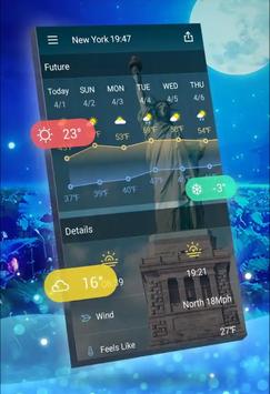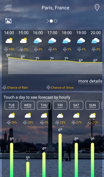 This sophisticated but highly intuitive app reflects the real-time weather conditions and provides you with the detailed meteo information you need to know: current and "Feels Like" temperature, the chance of precipitation and humidity info, wind speed and wind direction, pressure changes and more. Customize your weather report according to your taste – choose the information you would like to receive!