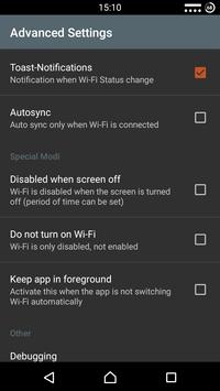 Every time the screen is switched on, the app checks whether WiFi networks are close to previous connection hotspots/wifi-modems respectively which are permanently stored in the settings. If no stored network is found, the Wi-Fi feature is turned off completely, otherwise it remains switched on.
