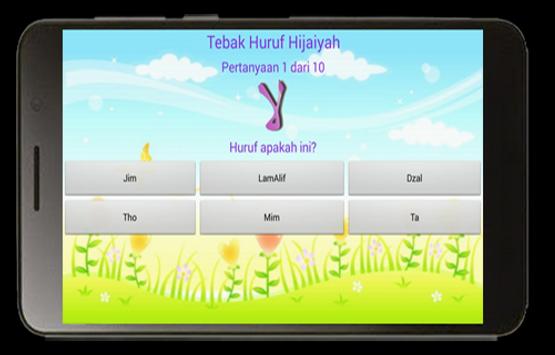 * Aplikasi ini disertai dengan permainan tebak huruf hijaiyah yaitu permainan memory untuk menguji daya ingat anak-anak.