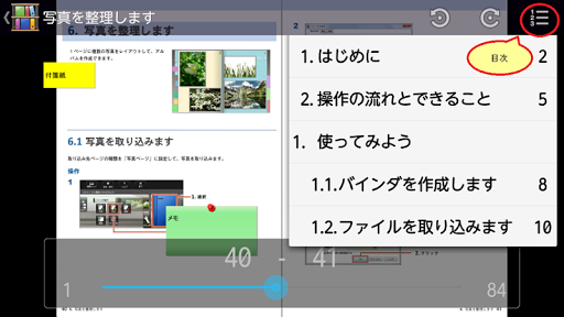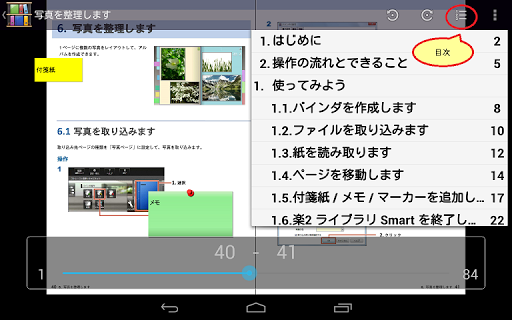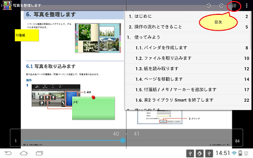 - 付箋やインデックス(仕切紙)の状態を保持したまま、モバイル端末に取り出すことができます。