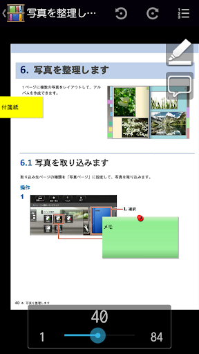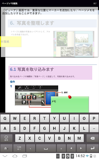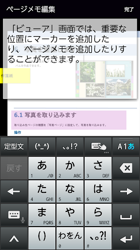 - 簡易編集として、モバイル端末上で、マーカーとページメモ(ページ単位のメモ)を入力できます。