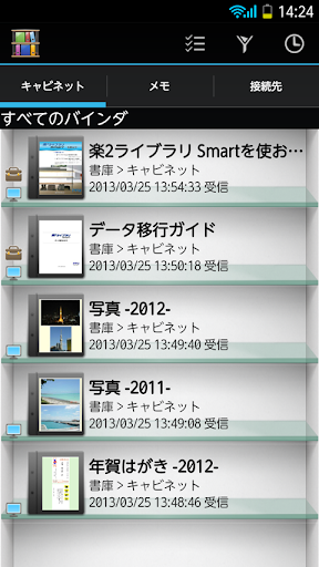 ●パソコン上のRack2-Filer Smartで作成したバインダデータを、モバイル端末に取り出して閲覧することが可能。
