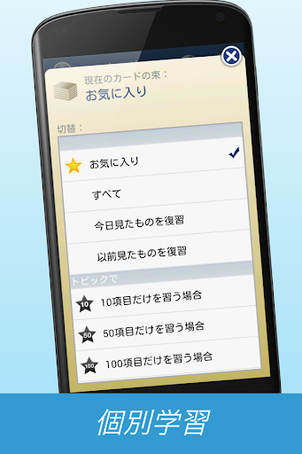 いずれのカードもお気に入りとしてマークし、一日中その単語に焦点を合わせるカスタムカードの束を作ることができます。記憶するために、その日の始めに練習したことを復習するレビューモードをオンにすることもできます。