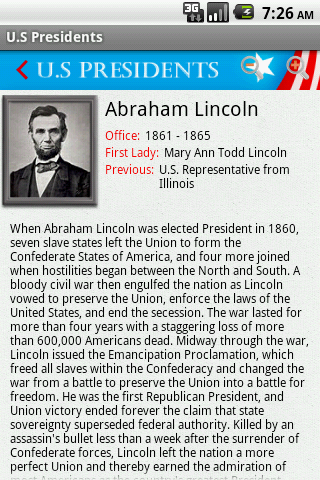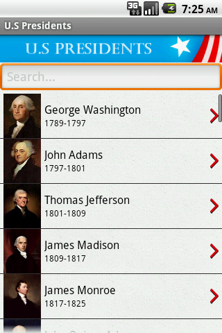 United State Presidents from George Washington to Donald J.Trump. Application contains ordered list of United State Presidents and give short summary information about their lives.
