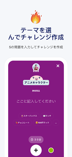 -自分の好きなテーマを選んでチャレンジを作成します。チャレンジ番号で友達を招待してください