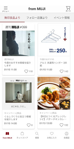 無印良品からのお知らせやお得な情報、お店のイベント情報などを確認できます。