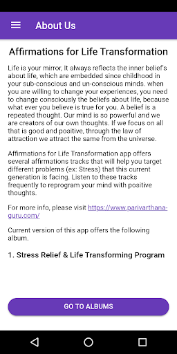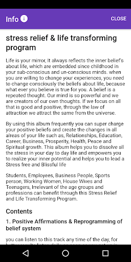 Affirmations for Life Transformation app offers several affirmations tracks that will help you target different problems (ex: Stress) that this current generation is facing. Listen to these tracks frequently to reprogram your mind with positive thoughts.