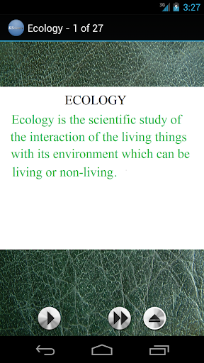 You can learn Ecology anywhere on your mobile device or tablet. Once the application is installed, you do not need internet access. This application teaches you Ecology in an easy to understand fashion. Each point is described by a highly experienced Biology tutor. Download our other applications on Science and Math as well. Happy learning.