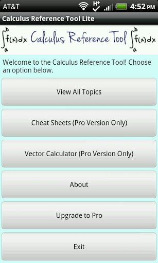 Calculus Reference Tool Lite is the perfect tool for any student taking a calculus course, or those looking for a brush up! It contains detailed descriptions with clear and helpful examples on over 15 calculus topics, ranging from limits and the definition of a derivative, up to partial derivatives and triple integrals using multiple coordinate systems. A must have to accompany any student!