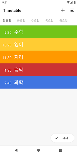 수업 시간표은 초,중, 고등학생 및 대학생의 완벽한 동반자입니다 시간과 각종 행사를 손쉽게 추가하고 확인해보세요.